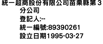 統一超商股份有限公司苗栗縣第3分公司