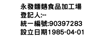 桃園市平鎮區東勢里中興路九龍段172巷50弄66號1樓永發麵麶食品加工場-統編:90397283