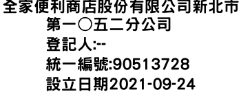 全家便利商店股份有限公司新北市第一○五二分公司