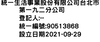 統一生活事業股份有限公司台北市第一九二分公司