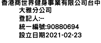 香港商世界健身事業有限公司台中大雅分公司