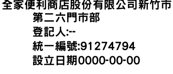 全家便利商店股份有限公司新竹市第二六門市部