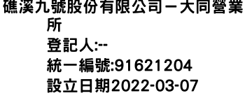 礁溪九號股份有限公司-大同營業所-統編:91621204