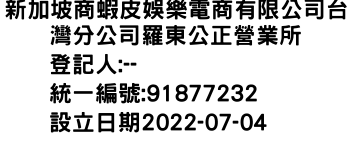 新加坡商蝦皮娛樂電商有限公司台灣分公司羅東公正營業所