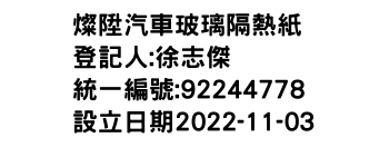 新北市三重區錦田里011鄰重陽路2段19巷8號2樓駿昇汽車隔熱紙-統編:80117082