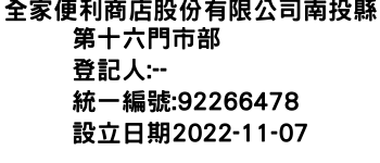 全家便利商店股份有限公司南投縣第十六門市部