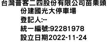台灣普客二四股份有限公司苗栗頭份建國光大停車場