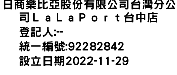 日商樂比亞股份有限公司台灣分公司LaLaPort台中店