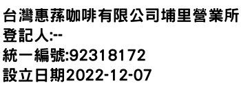 台灣惠蓀咖啡有限公司埔里營業所