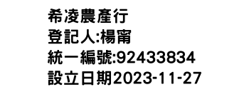統一編號:92433834