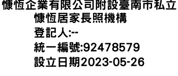 慷恆企業有限公司附設臺南市私立慷恆居家長照機構