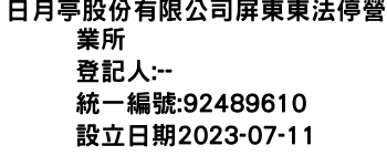 日月亭股份有限公司屏東東法停營業所