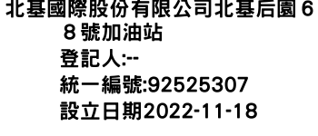 新北市新莊區新北大道4段135號8樓之1北基國際股份有限公司北基后園68號加油站-統編:92525307
