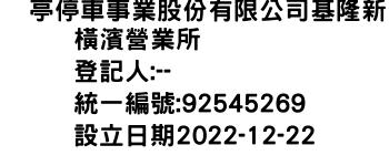 俥亭停車事業股份有限公司基隆新橫濱營業所