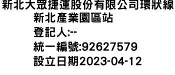 新北市中和區景平路2號新北大眾捷運股份有限公司環狀線新北產業園區站-統編:92627579