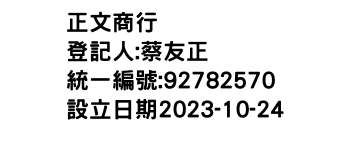 統一編號:92782570