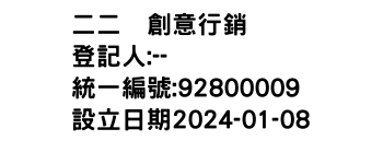 統一編號:92800009
