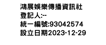 臺北市大安區敦化南路1段233巷20號3樓鴻展娛樂傳播資訊社-統編:93042574