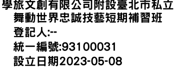 學旅文創有限公司附設臺北市私立舞動世界忠誠技藝短期補習班