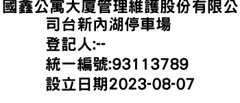 國鑫公寓大廈管理維護股份有限公司台新內湖停車場