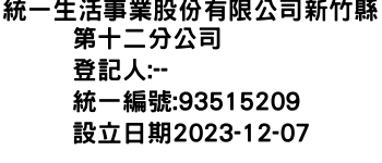 統一生活事業股份有限公司新竹縣第十二分公司