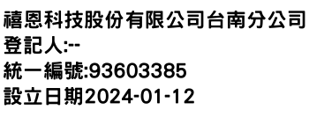 禧恩科技股份有限公司台南分公司