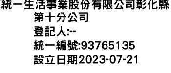 統一生活事業股份有限公司彰化縣第十分公司