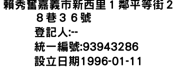 賴秀奮嘉義市新西里1鄰平等街28巷36號