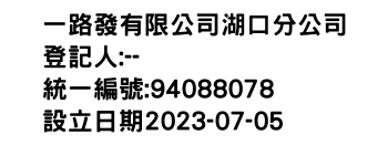 臺中市西區民龍里臺灣大道二段186號14樓之1一路發有限公司湖口分公司-統編:94088078
