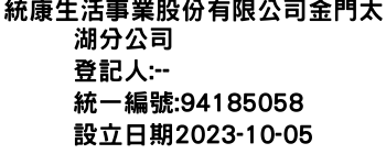 統康生活事業股份有限公司金門太湖分公司