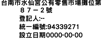 台南市水仙宮公有零售市場攤位第87-2號