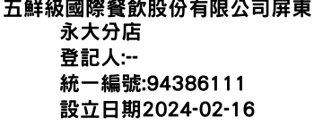 五鮮級國際餐飲股份有限公司屏東永大分店