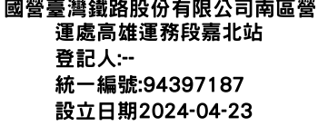 嘉義縣水上鄉三鎮村26號國營臺灣鐵路股份有限公司南區營運處高雄運務段嘉北站-統編:94397187
