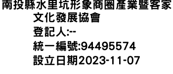 臺北市文山區景中街30巷12號1樓南投縣水里坑形象商圈產業暨客家文化發展協會-統編:94495574