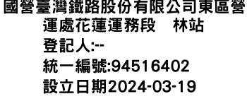 花蓮縣鳳林鎮林榮里兆豐路800號國營臺灣鐵路股份有限公司東區營運處花蓮運務段花蓮站-統編:94771521