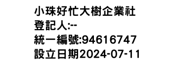 桃園市龍潭區中山里中正路42號小珠好忙大樹企業社-統編:94616747