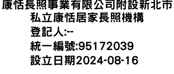 新北市三峽區龍學里大觀路9號2樓康恬長照事業有限公司附設新北市私立康恬居家長照機構-統編:95172039