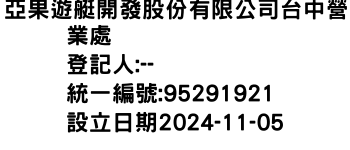 臺北市信義區基隆路1段155號8樓之8亞果遊艇開發股份有限公司台中營業處-統編:95291921
