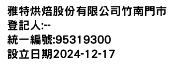雅特烘焙股份有限公司頭份門市-統編:95319316