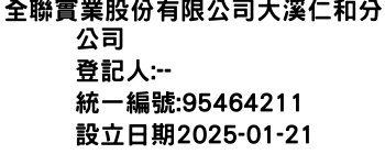 臺中市大甲區西岐里順帆路97號1樓全聯實業股份有限公司大溪仁和分公司-統編:95464211