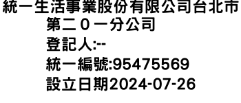 統一生活事業股份有限公司台北市第二0一分公司