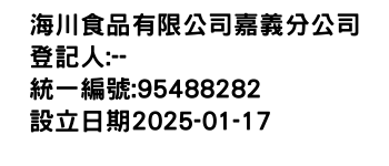 臺北市松山區安平里南京東路5段251巷24弄22號2樓之1海川食品有限公司嘉義分公司-統編:95488282