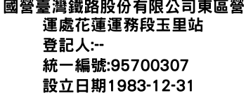 南投縣水里鄉車埕村民權巷2號國營臺灣鐵路股份有限公司東區營運處花蓮運務段林榮新光站-統編:95048953