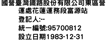 南投縣水里鄉車埕村民權巷2號國營臺灣鐵路股份有限公司東區營運處花蓮運務段林榮新光站-統編:95048953