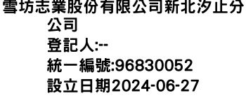 新北市汐止區中興里中興路153號一樓雪坊志業股份有限公司永和安樂路分公司-統編:96820619