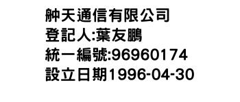 統一編號:96960174