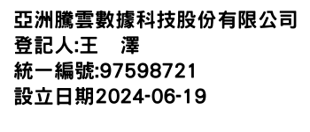 桃園市龜山區南上里民生北路一段2巷8弄7號(1樓)亞洲騰雲數據科技股份有限公司-統編:97598721