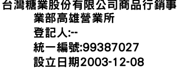 台灣糖業股份有限公司商品行銷事業部高雄營業所