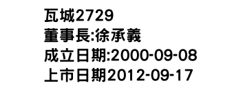瓦城股價 OTC:2729