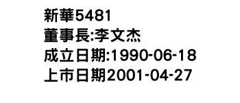 新華股價 OTC:5481